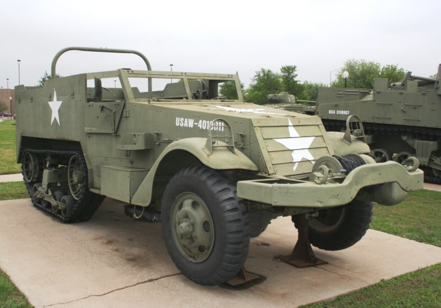 Outside of the 4th Infantry Division museum are some memorials and several vehicles.