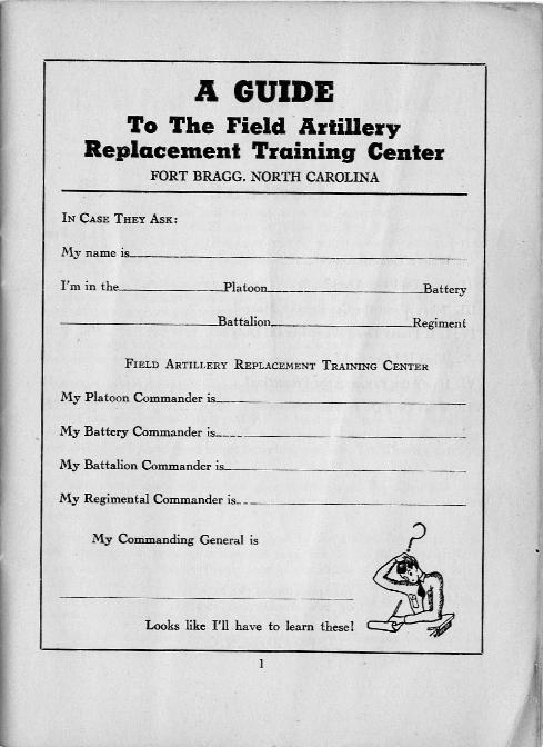 US Army Field Artillery Replacement Training Center, Fort Bragg, NC